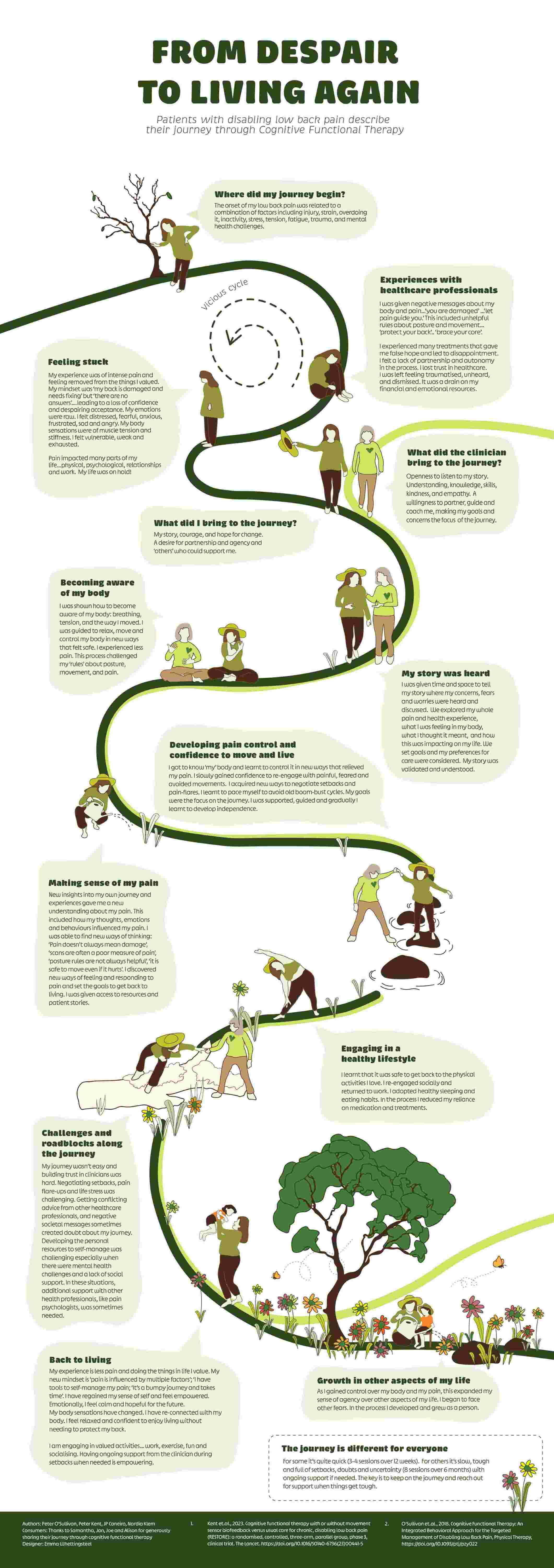 "From Despair to Living Again" outlines the journey of a person recovering from persistent disabling low back pain, who does not have specific pathology.